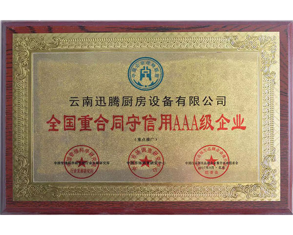 全國重合同守信用AAA級企業(yè)榮譽證書